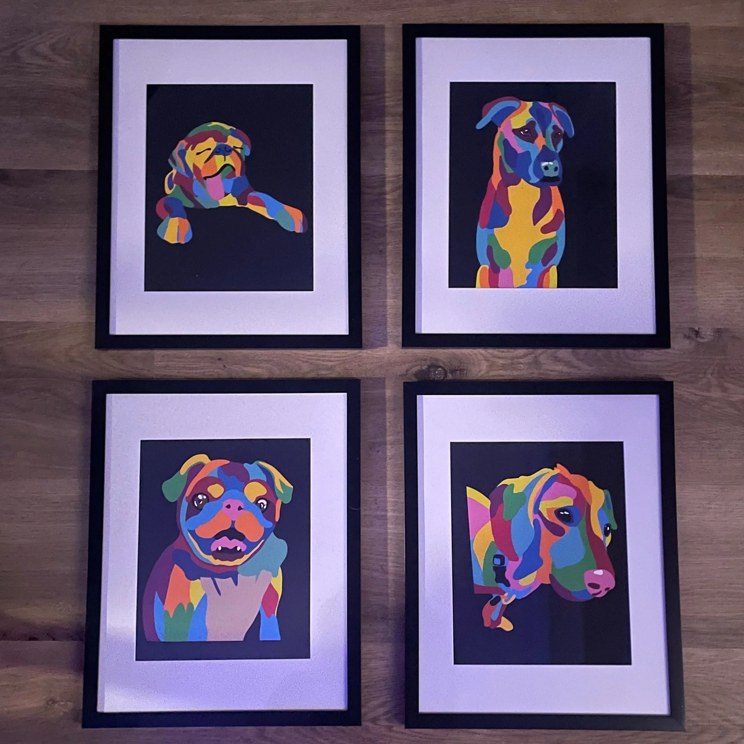 Colorful, custom portraits created from your pet’s photo — designed to celebrate their personality & bring joy to your space.